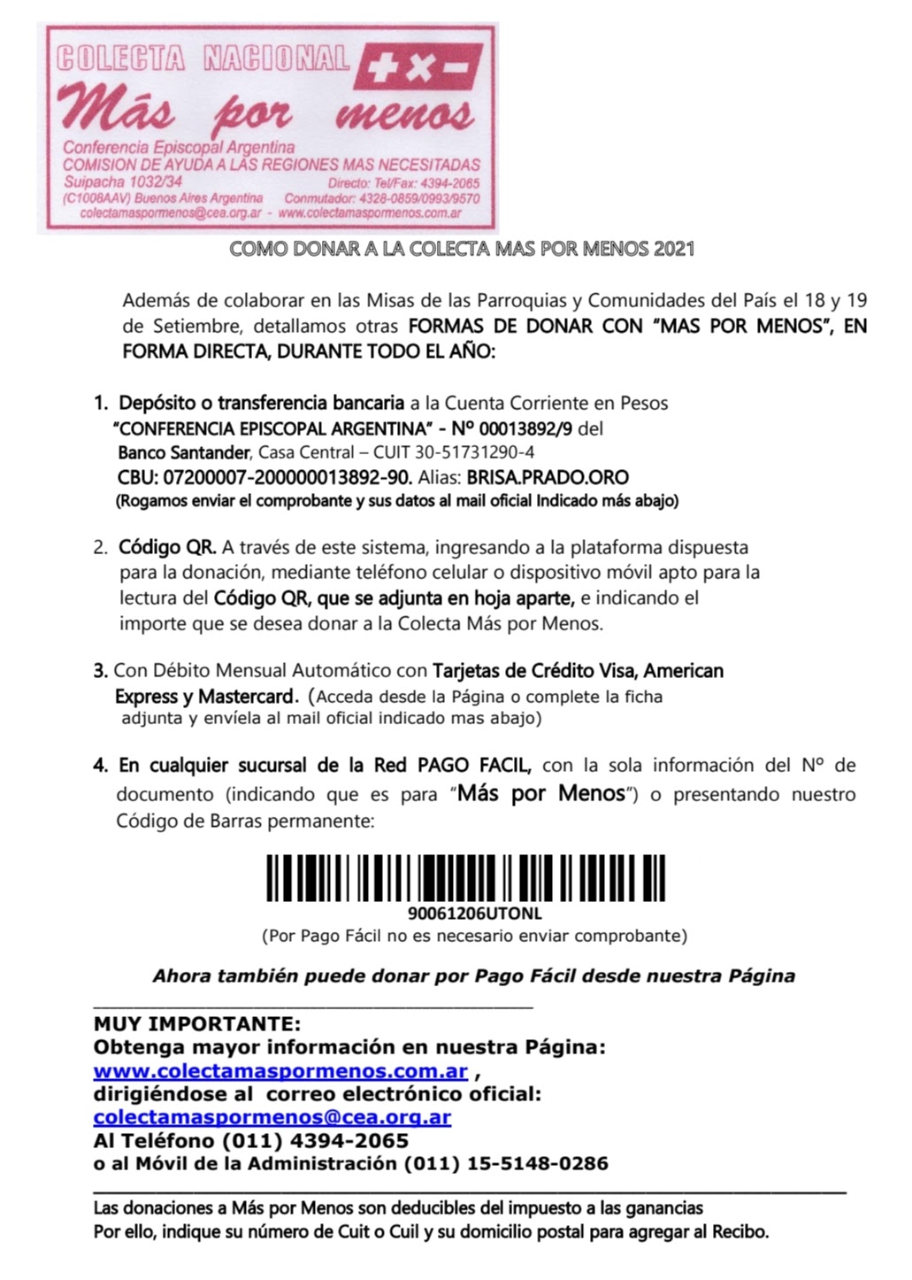 Santa Lucia necesita tu colaboración
